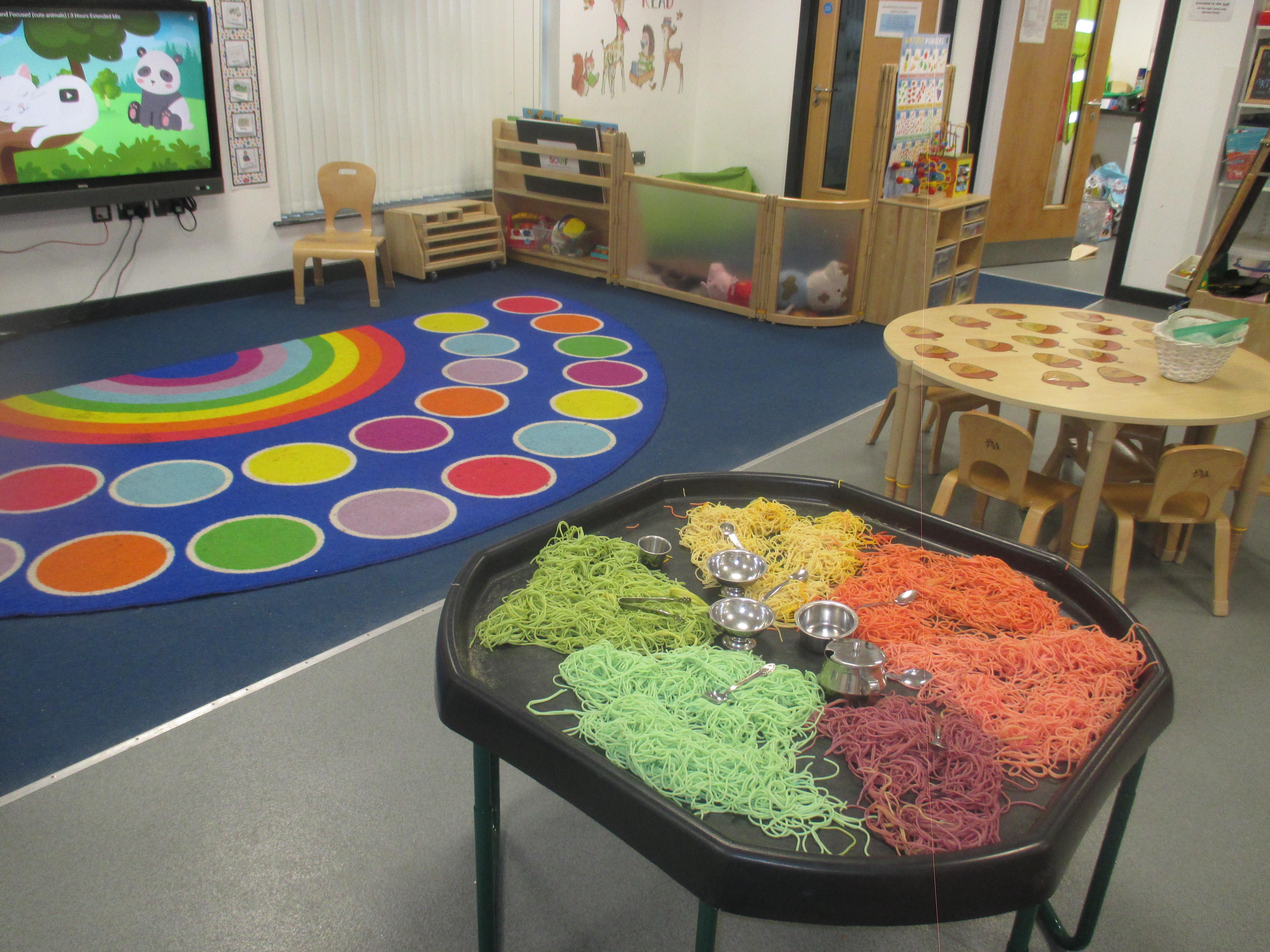 Our Learning environment is very important to us as we recognise the impact it has on our learners. We are constantly enhancing our learning environment through the course of each school year. We respond to the needs, interests, strengths and next steps of our children to design a bespoke environment that is developmentally apropriate for our children. Our Learning environment includes indoors and outdoors, our wall displays, continuous provision which means the things that are always available to the children such as our block play and sand area, and enhancements and activities that are added to our provision daily, weekly and monthly.