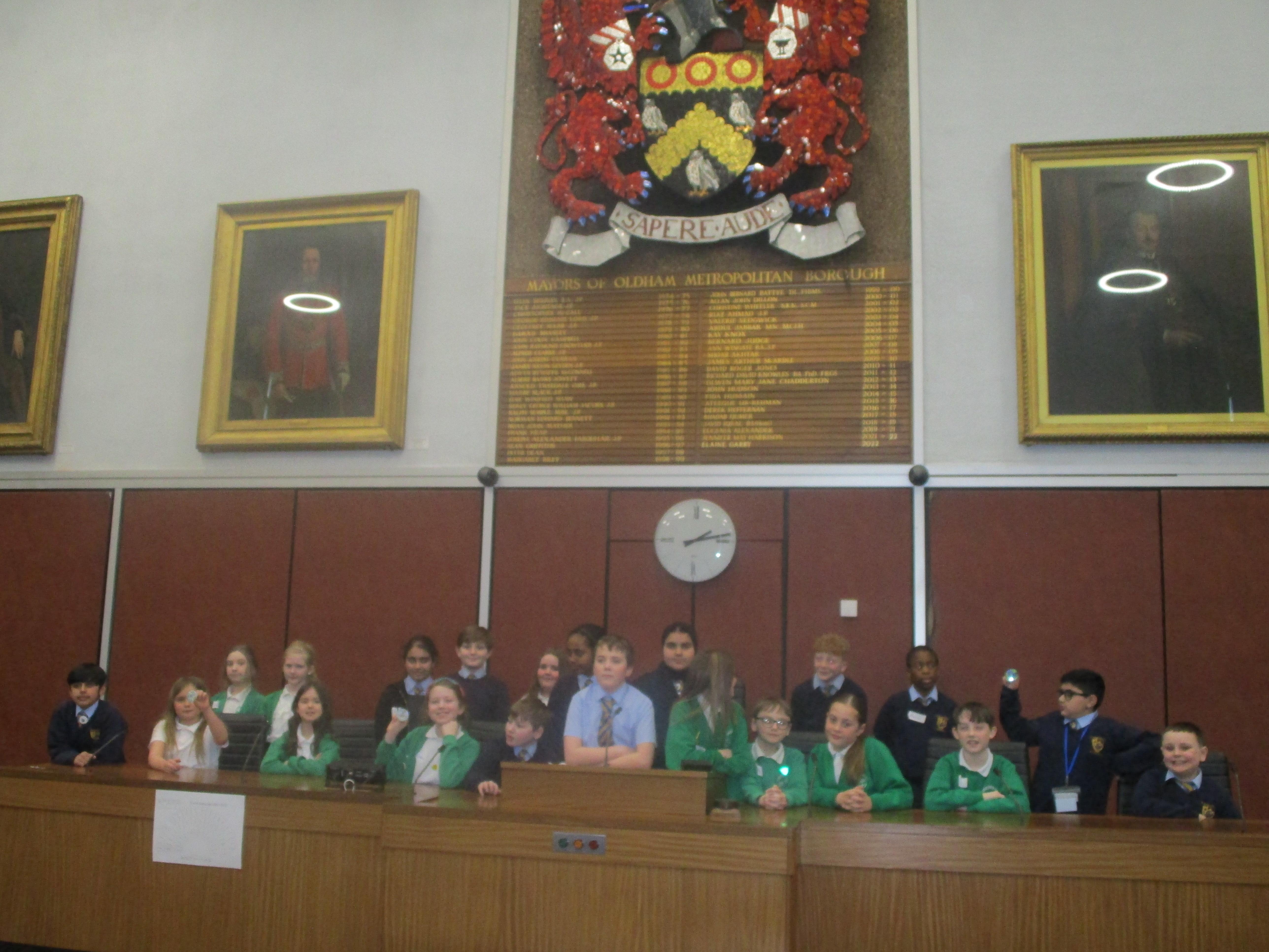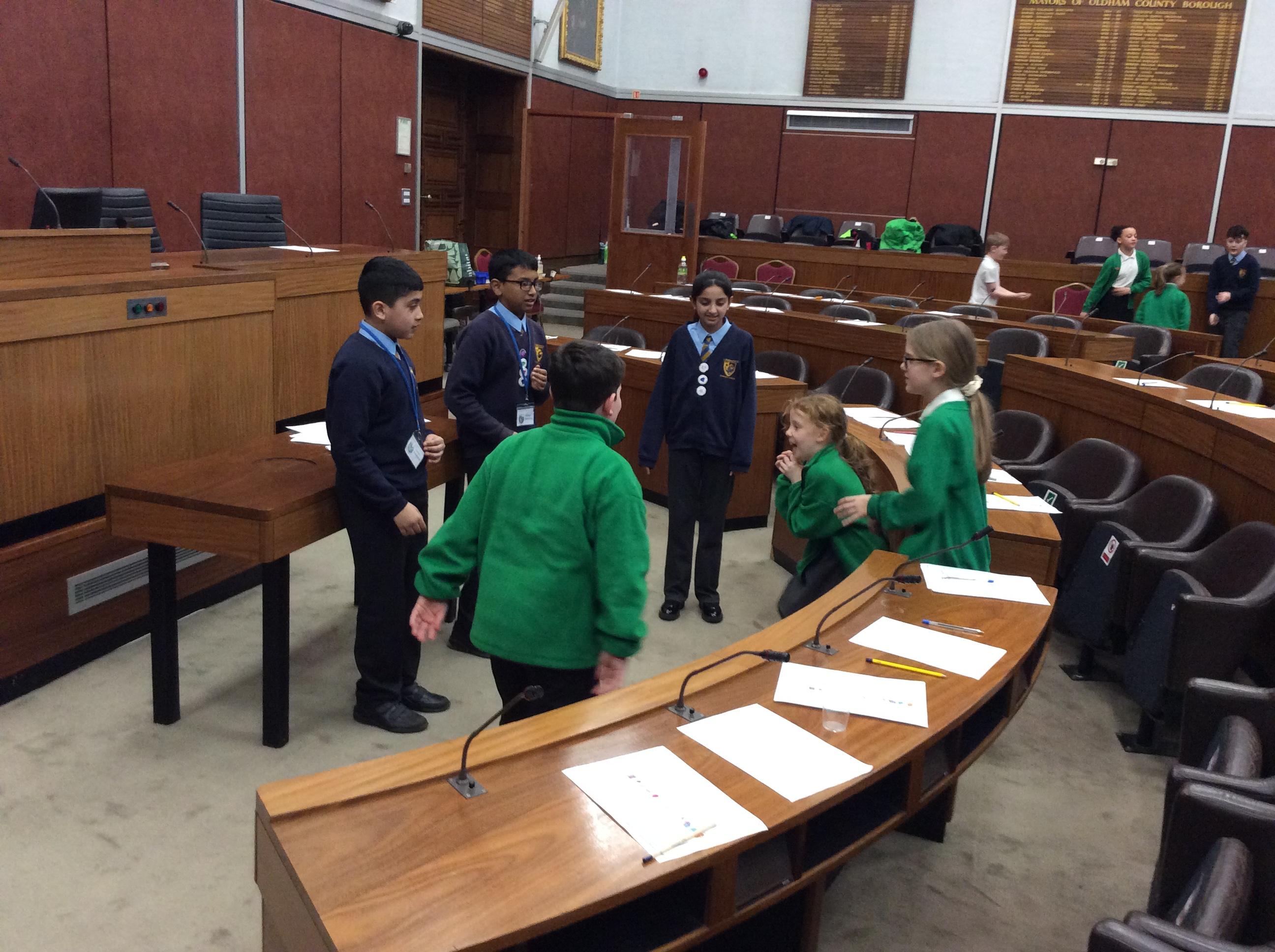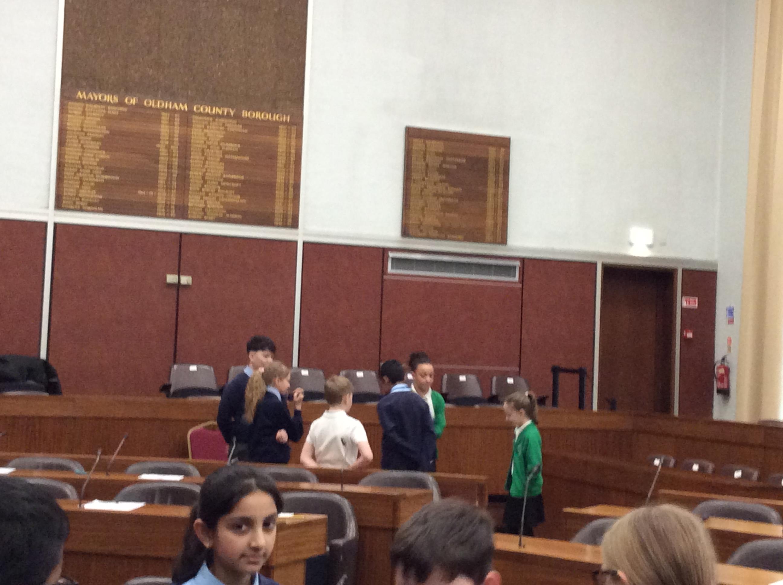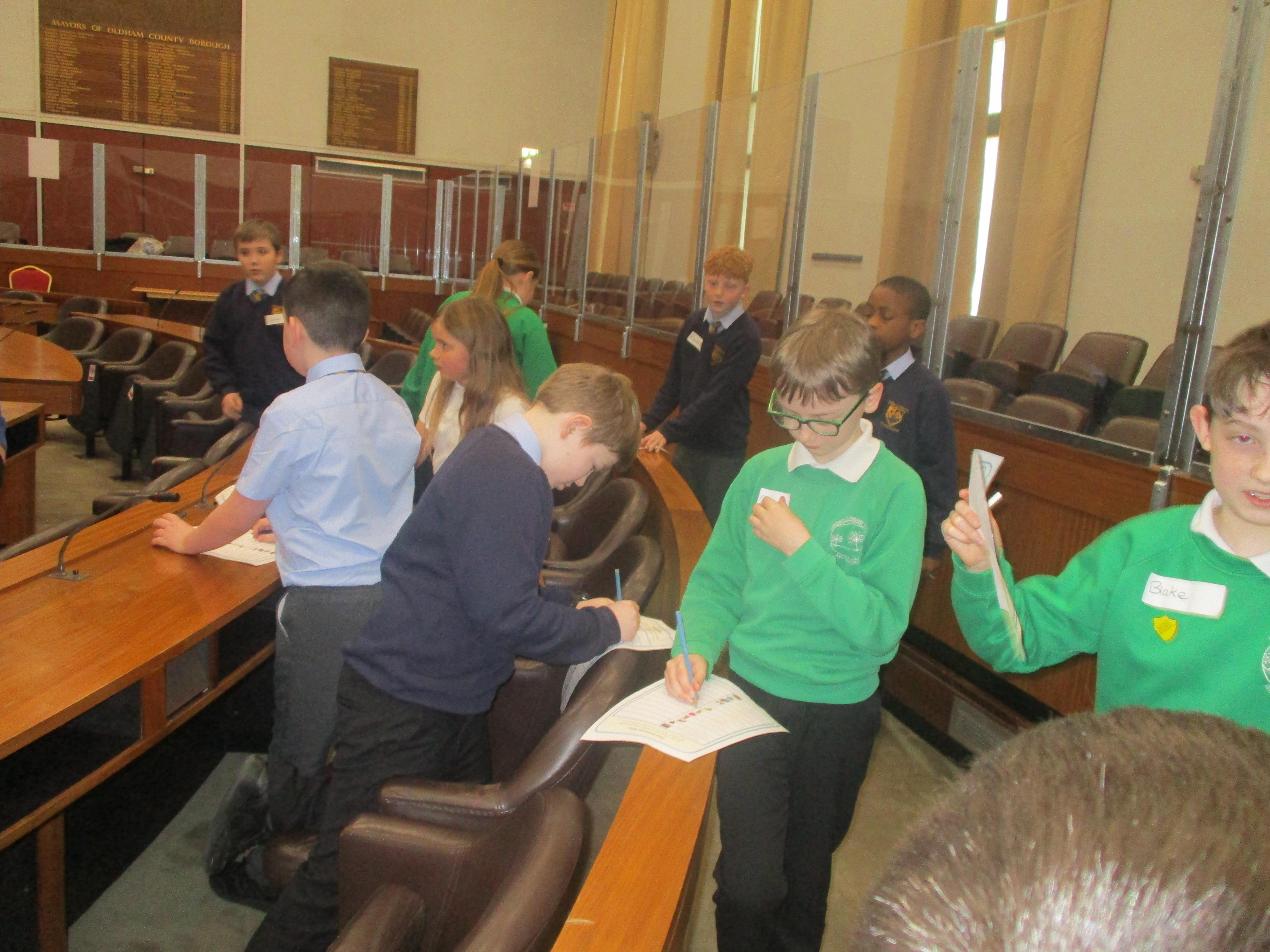 They completed many activities and focused on building both teamwork and leadership skills. The School Council also learnt lots of information regarding the current Mayor of Oldham and previous Mayors! The children also had the chance to sit in the Mayor's seat in the Council chambers and use the microphones to offer answers and speak as if they were at a real council meeting.