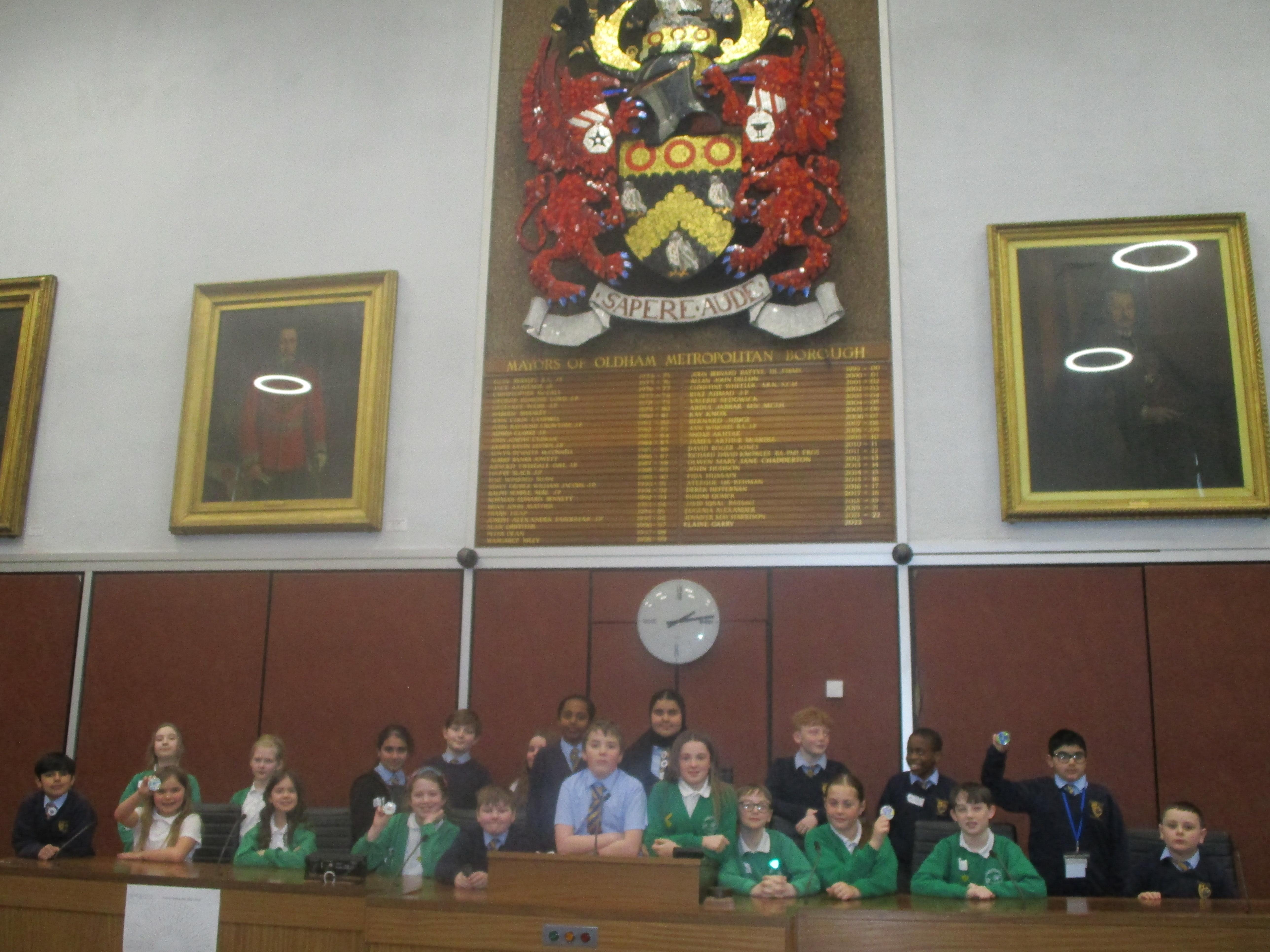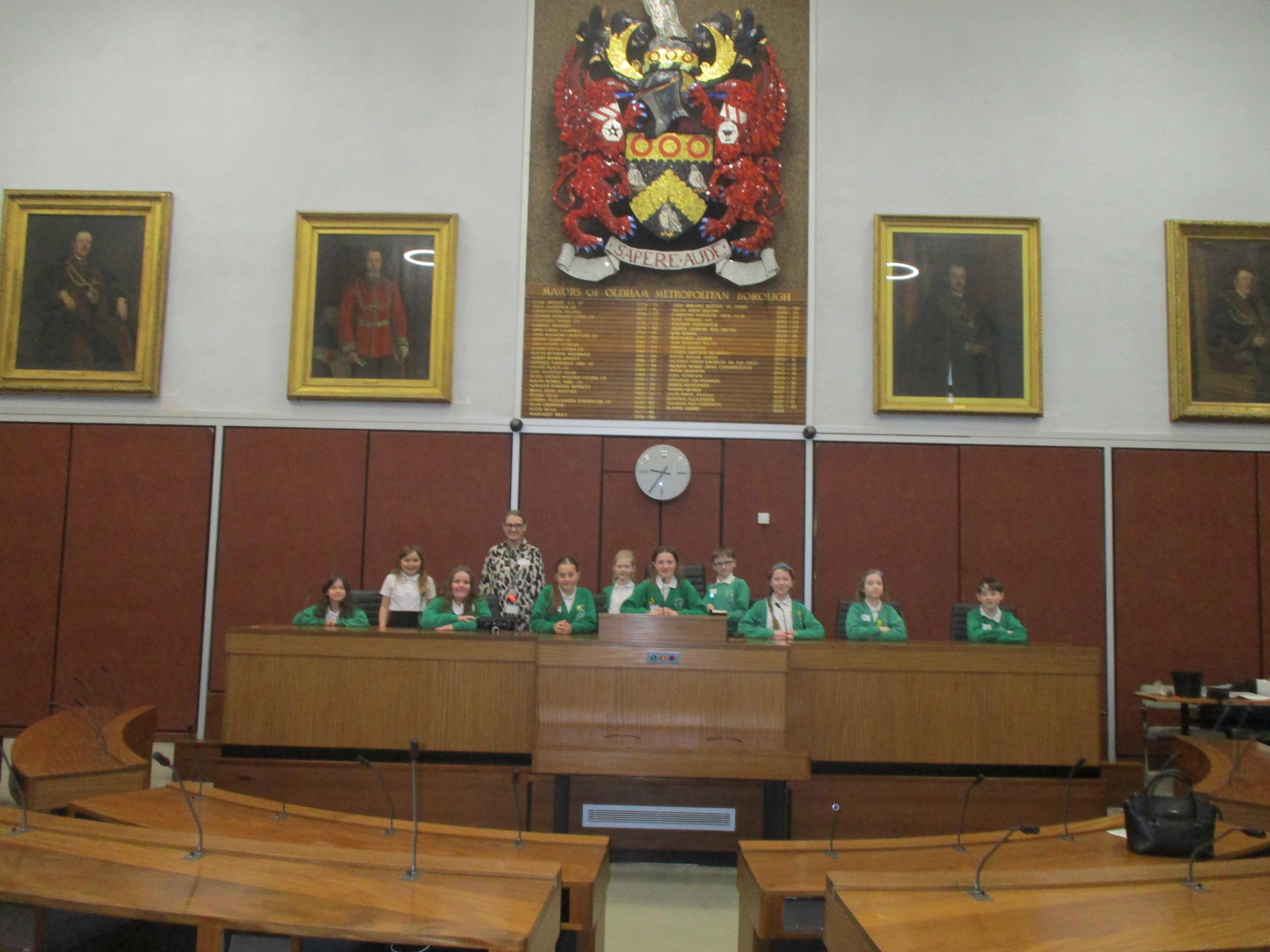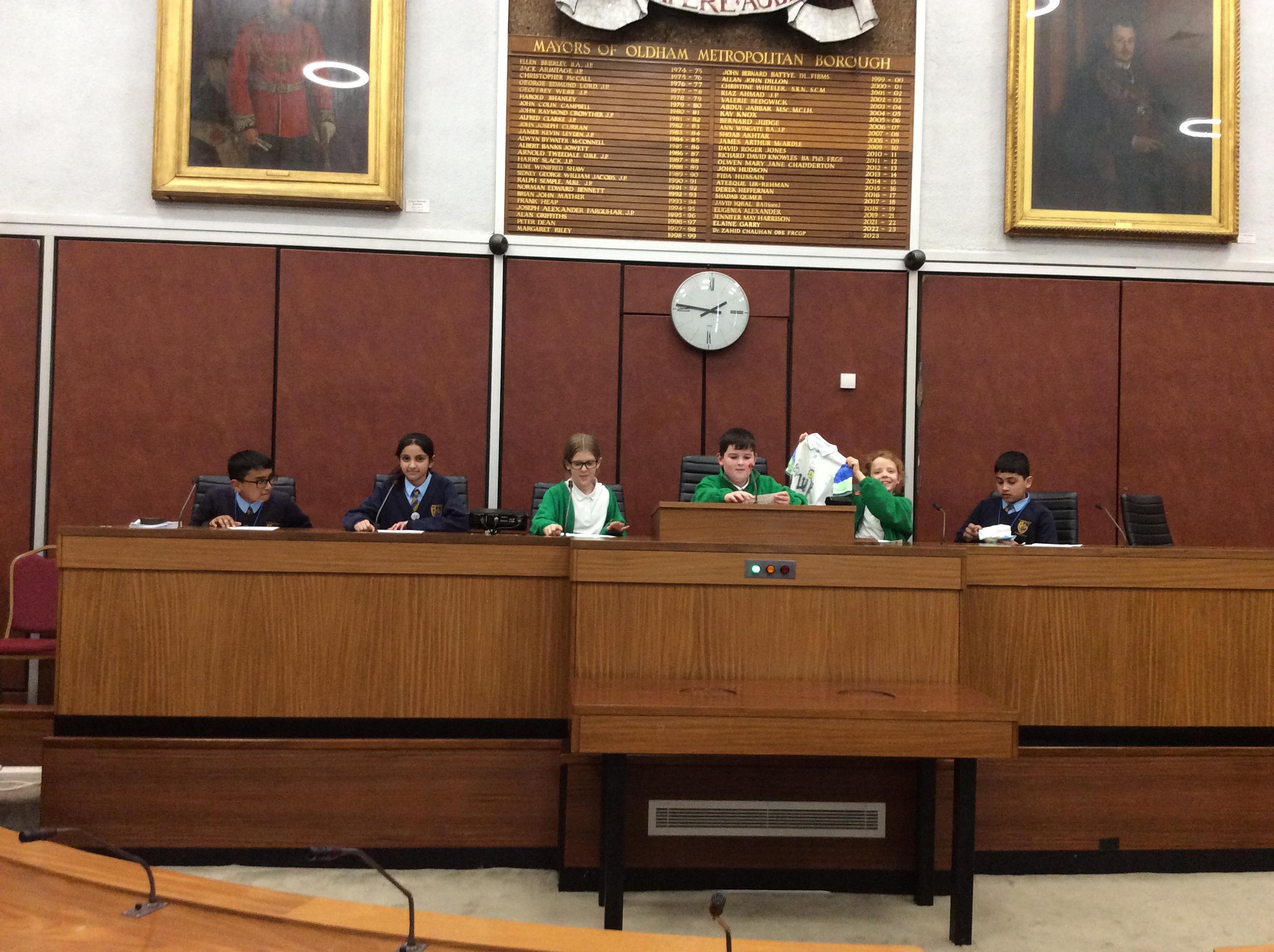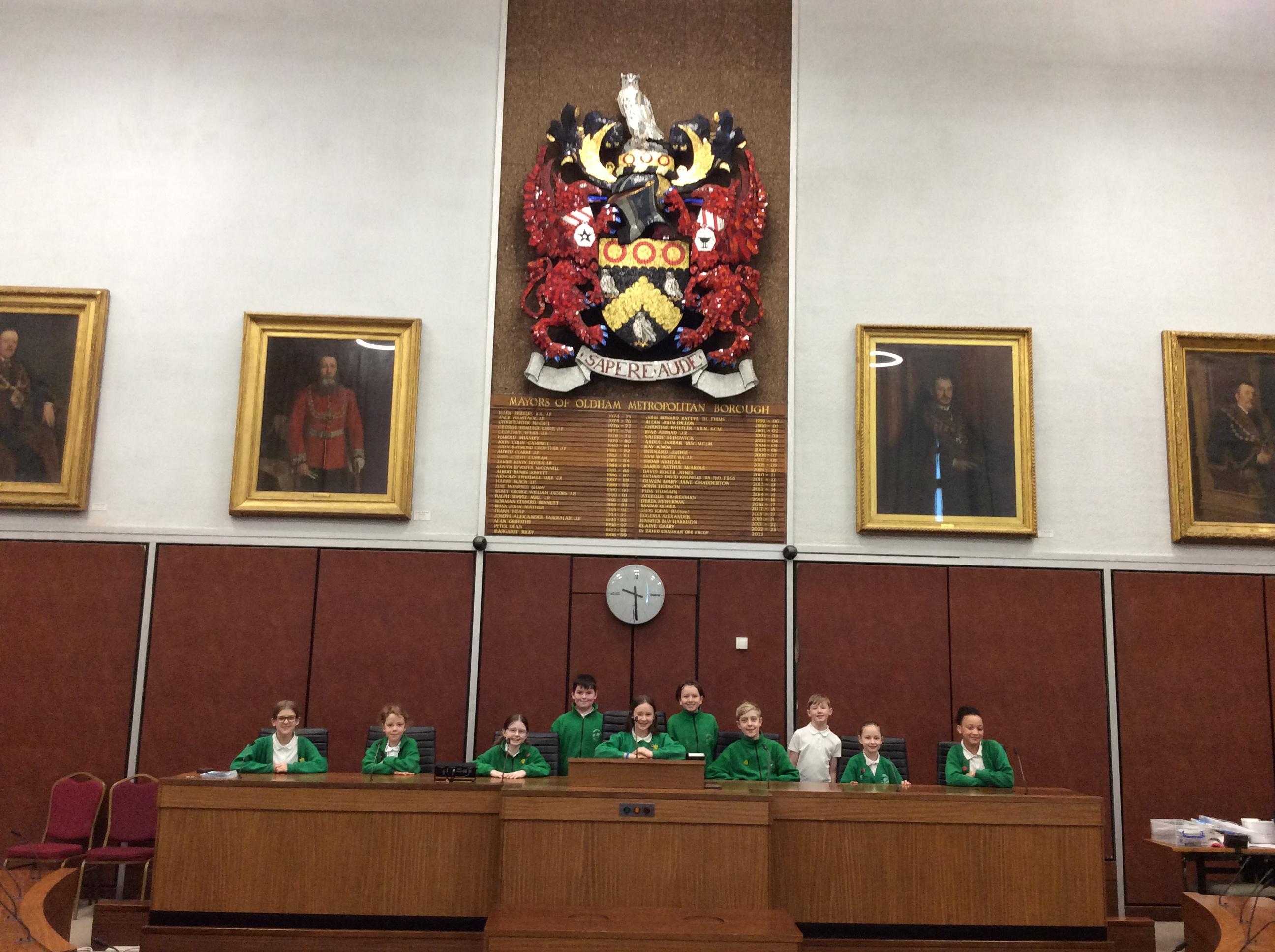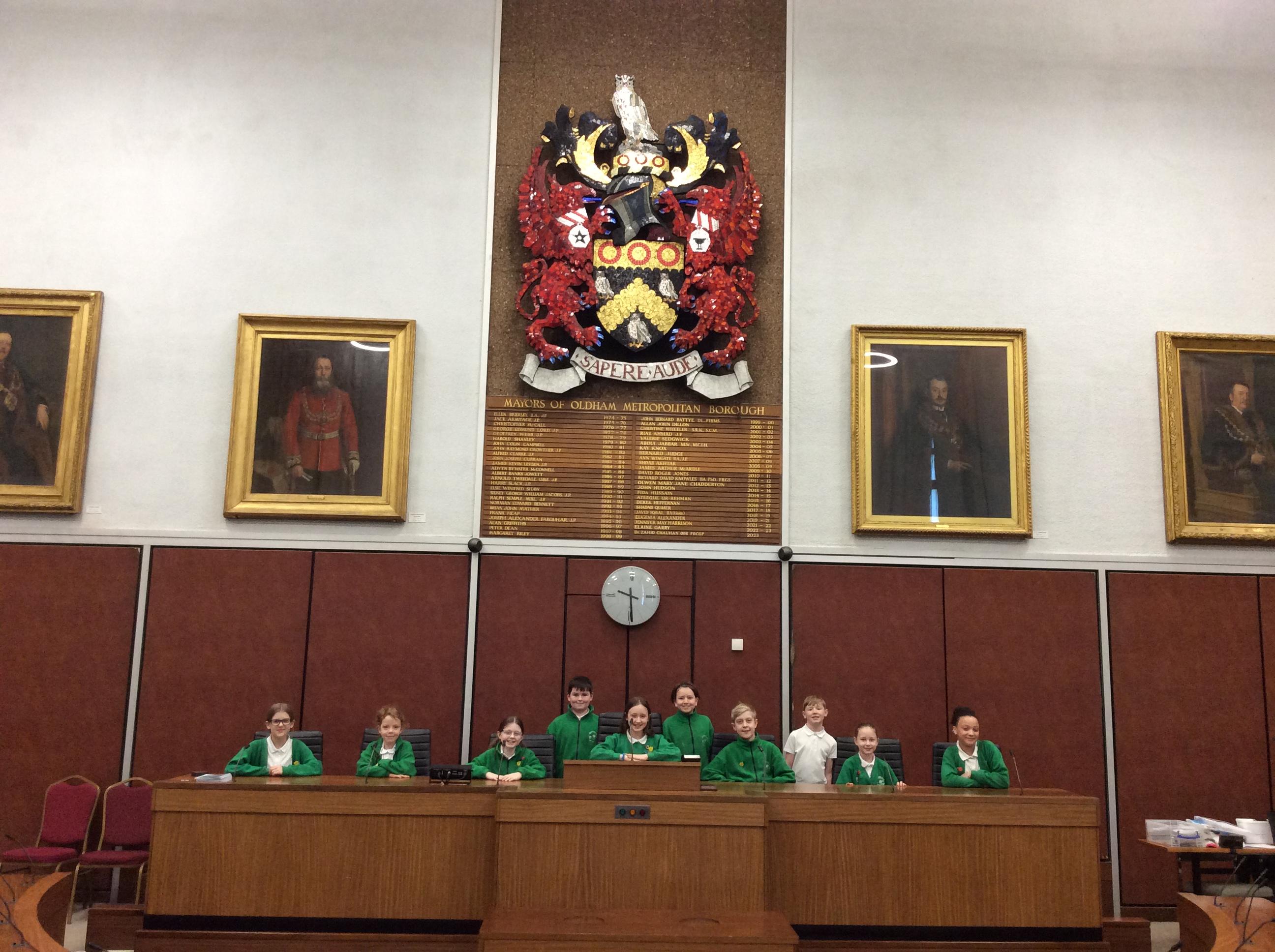They completed many activities and focused on building both teamwork and leadership skills. The School Council also learnt lots of information regarding the current Mayor of Oldham and previous Mayors! The children also had the chance to sit in the Mayor's seat in the Council chambers and use the microphones to offer answers and speak as if they were at a real council meeting.