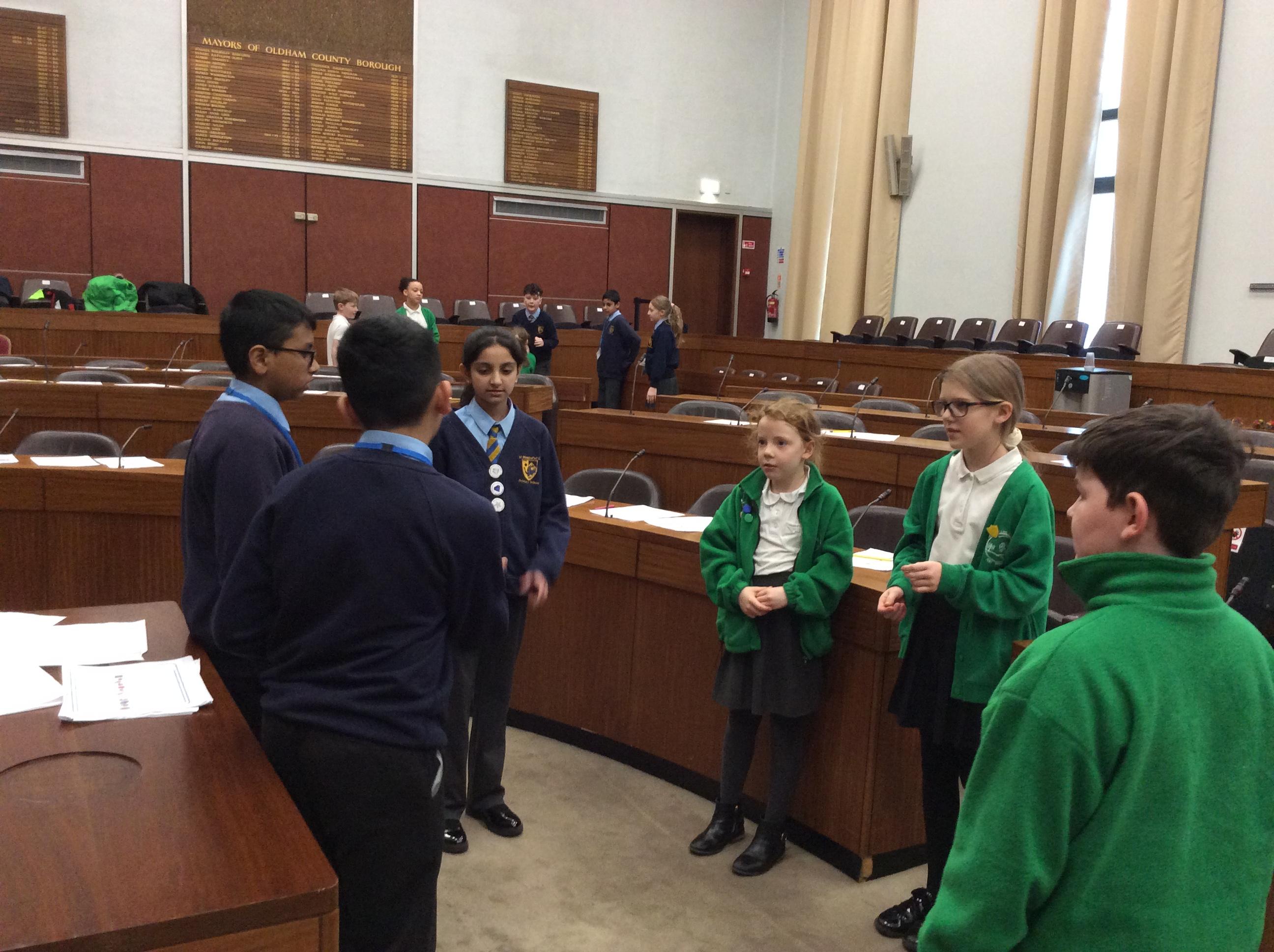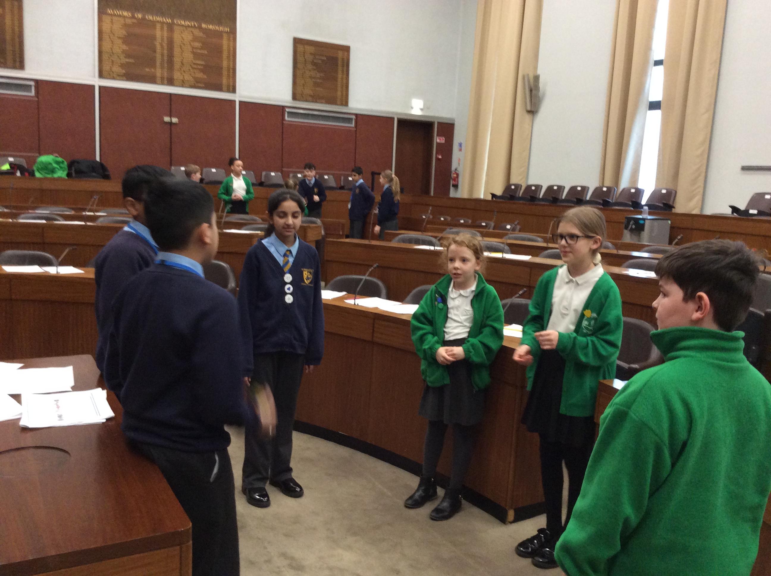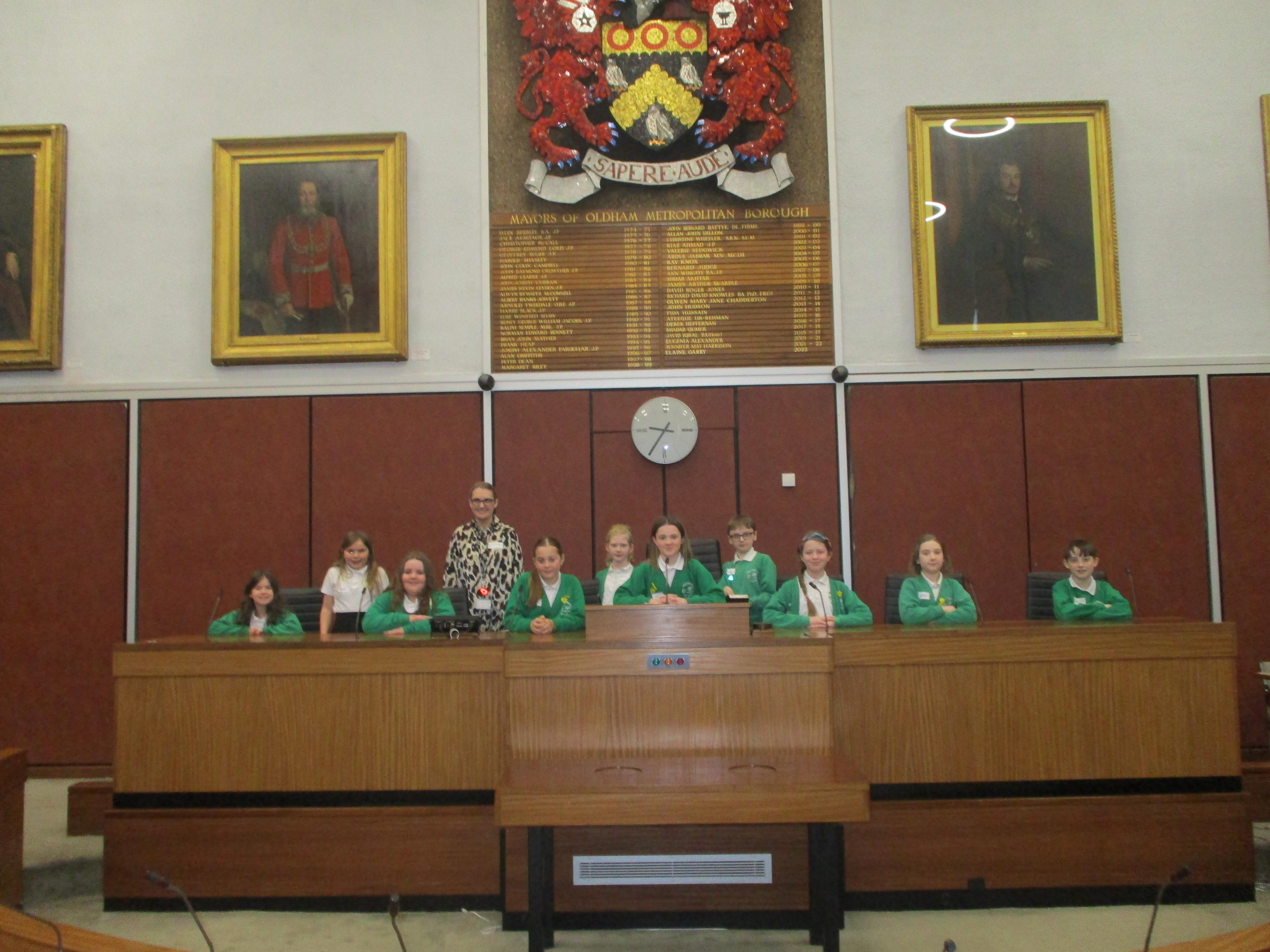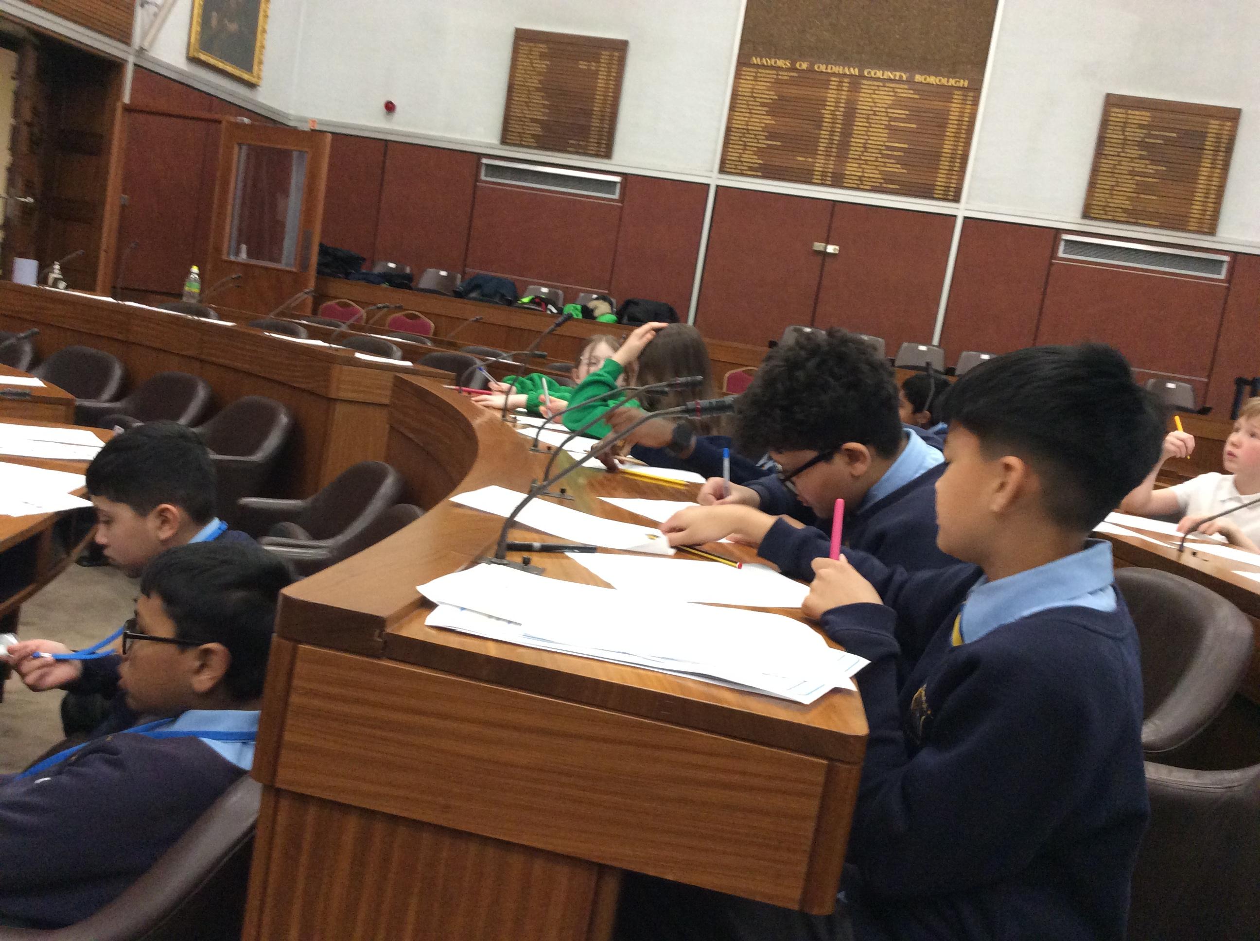 They completed many activities and focused on building both teamwork and leadership skills. The School Council also learnt lots of information regarding the current Mayor of Oldham and previous Mayors! The children also had the chance to sit in the Mayor's seat in the Council chambers and use the microphones to offer answers and speak as if they were at a real council meeting.