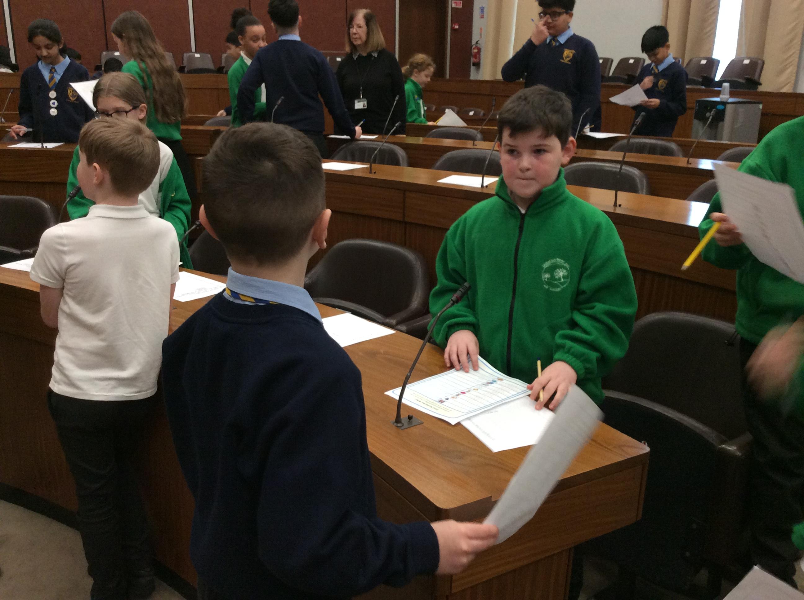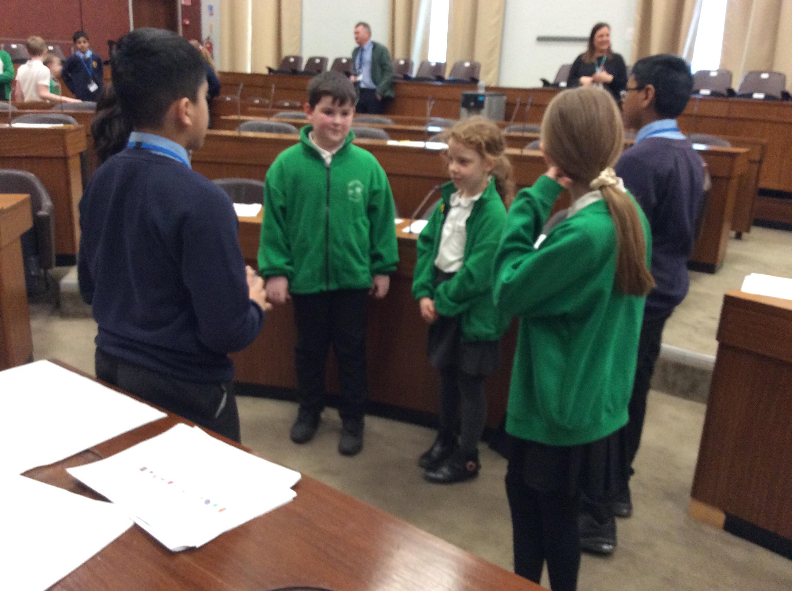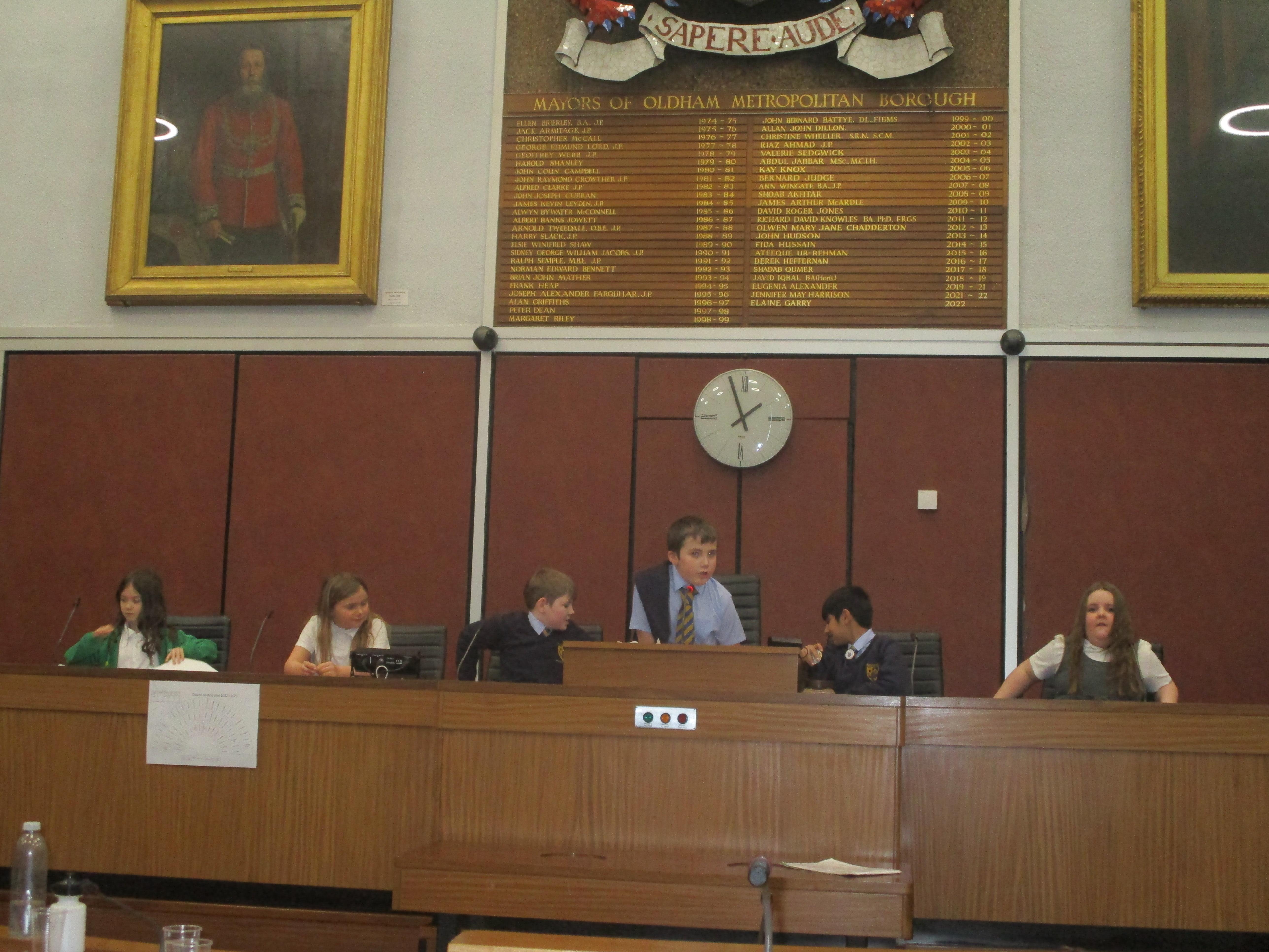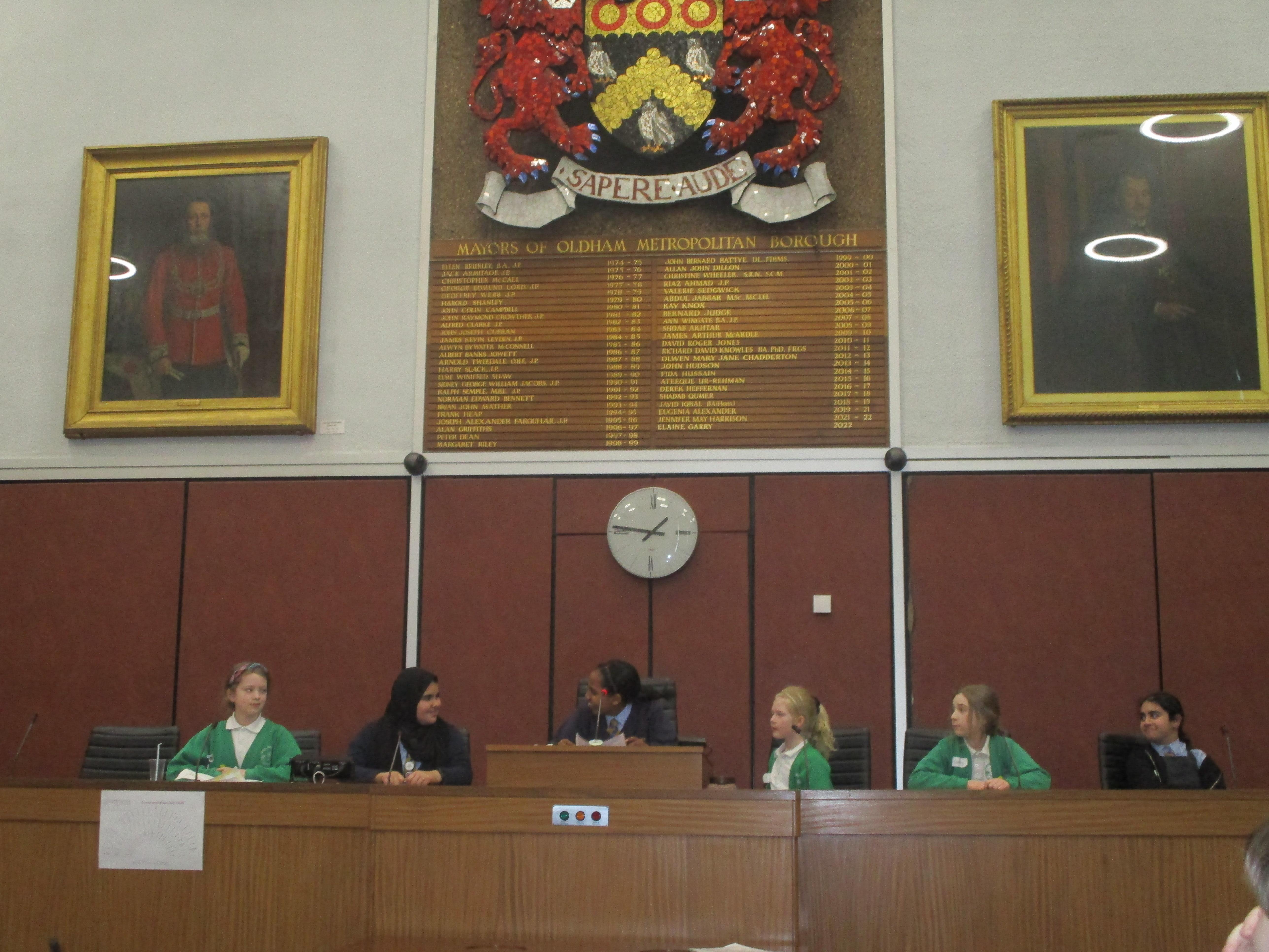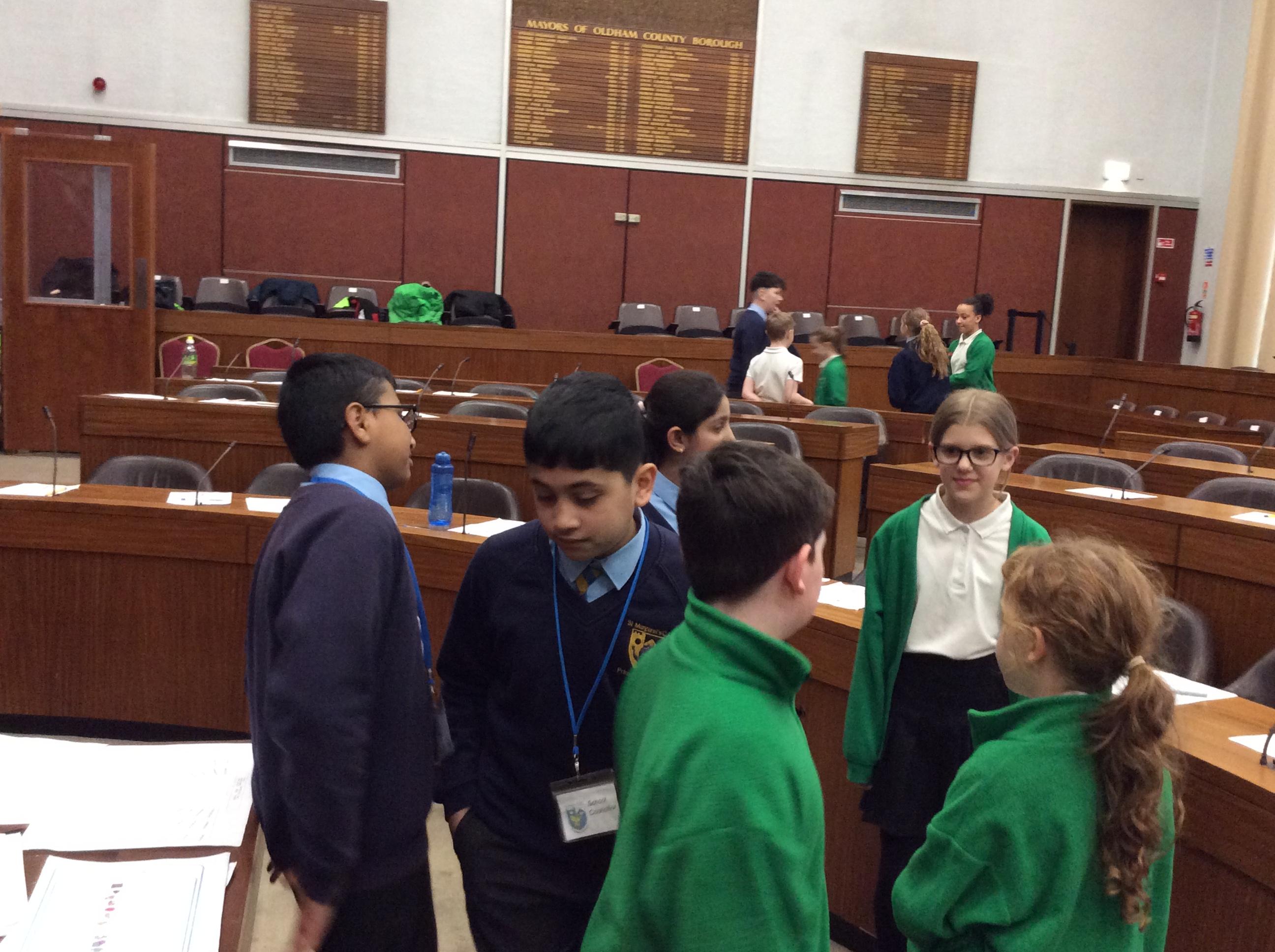 They completed many activities and focused on building both teamwork and leadership skills. The School Council also learnt lots of information regarding the current Mayor of Oldham and previous Mayors! The children also had the chance to sit in the Mayor's seat in the Council chambers and use the microphones to offer answers and speak as if they were at a real council meeting.