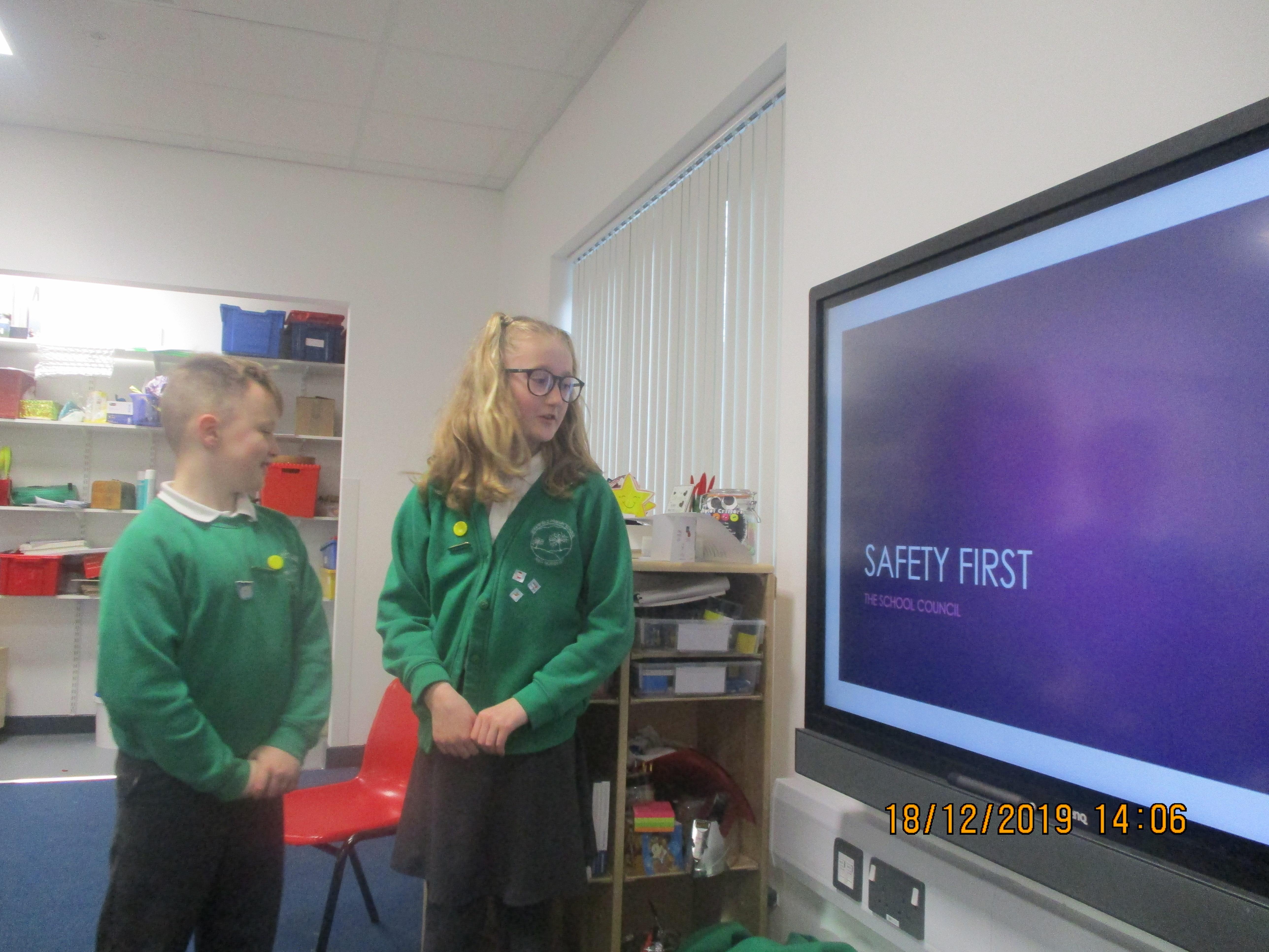 This week the school Council put together a presentation to tell all the children in Greenfield Primary School how to stay safe, both in school and over the Christmas holidays.