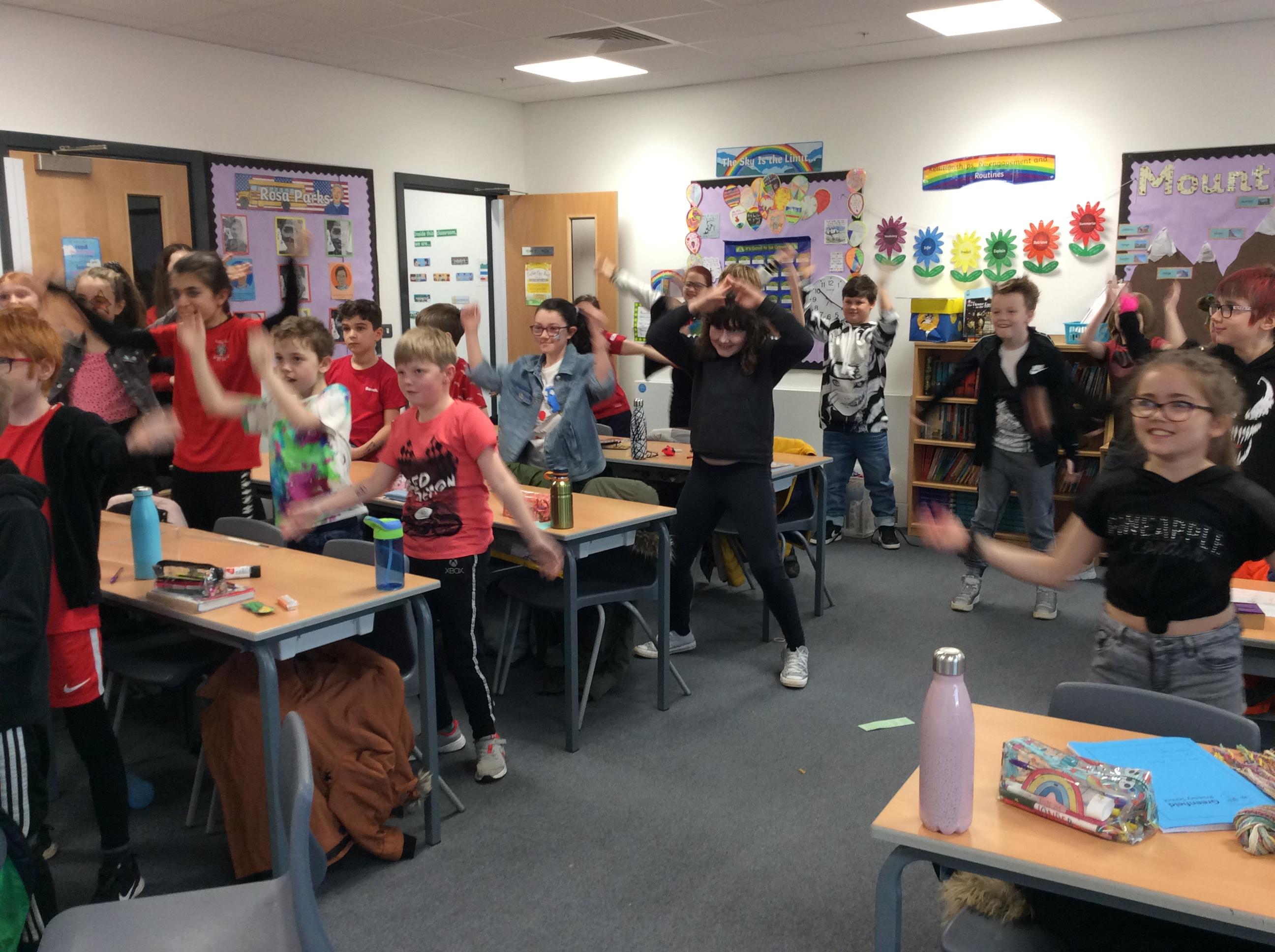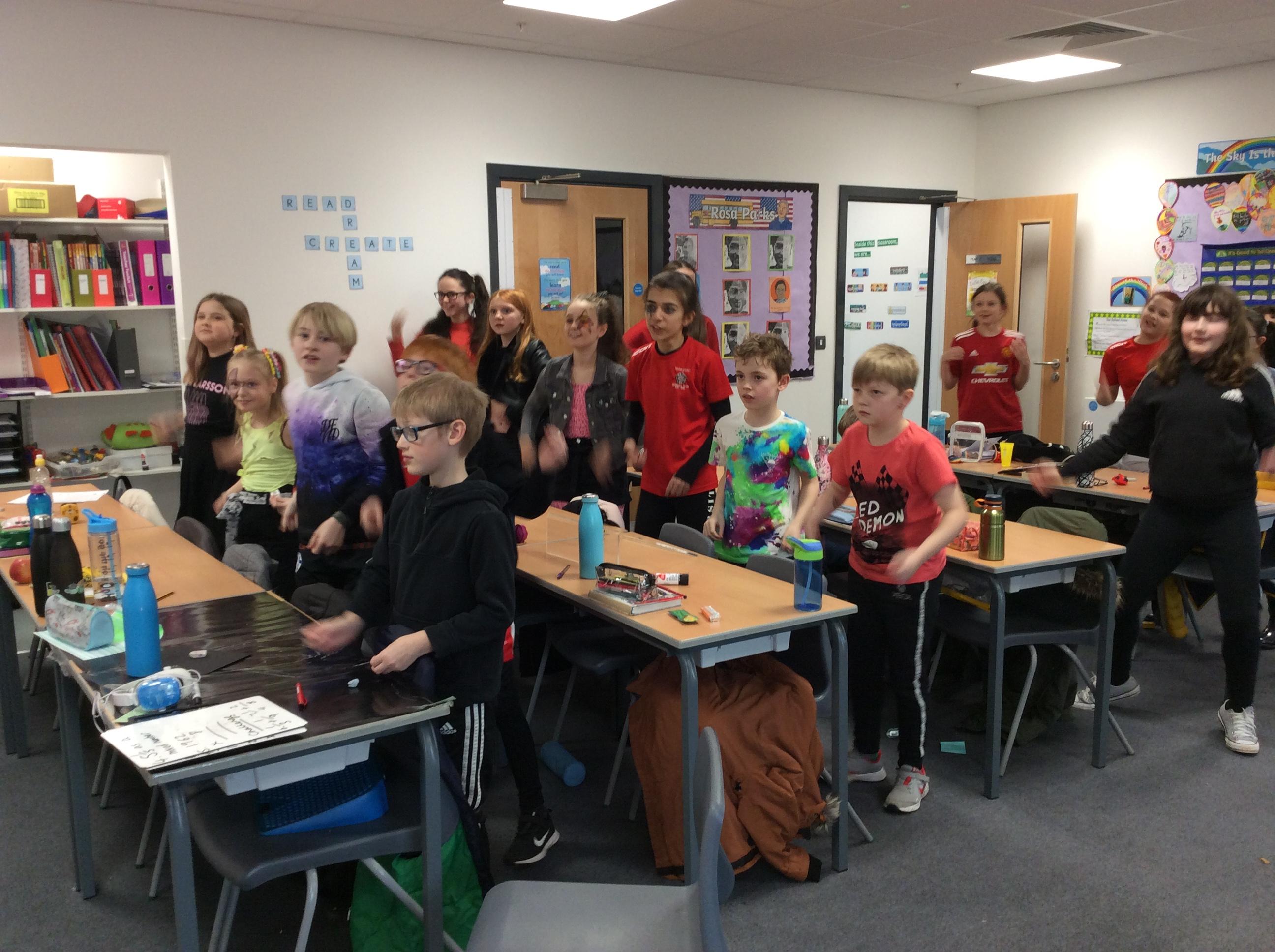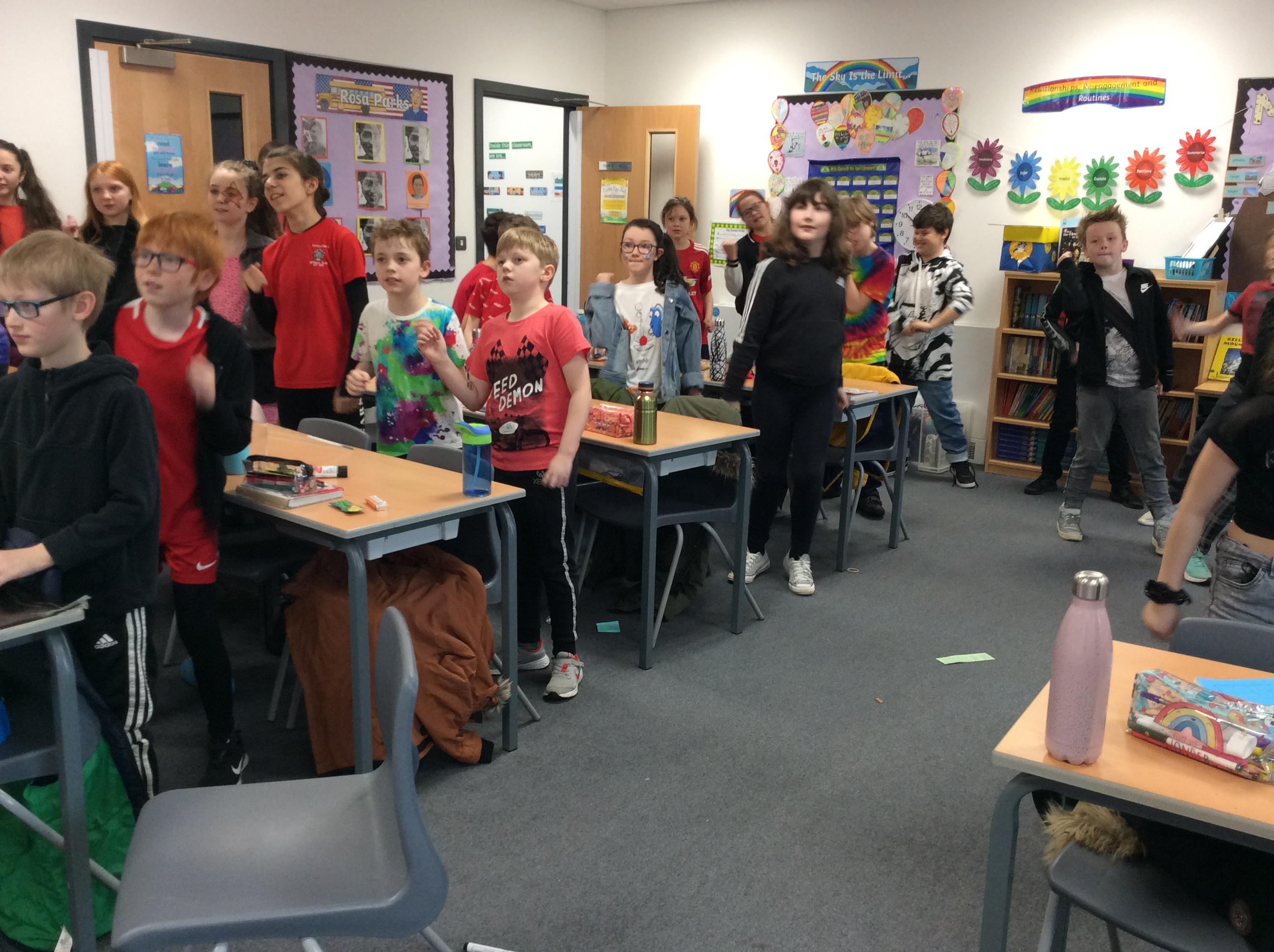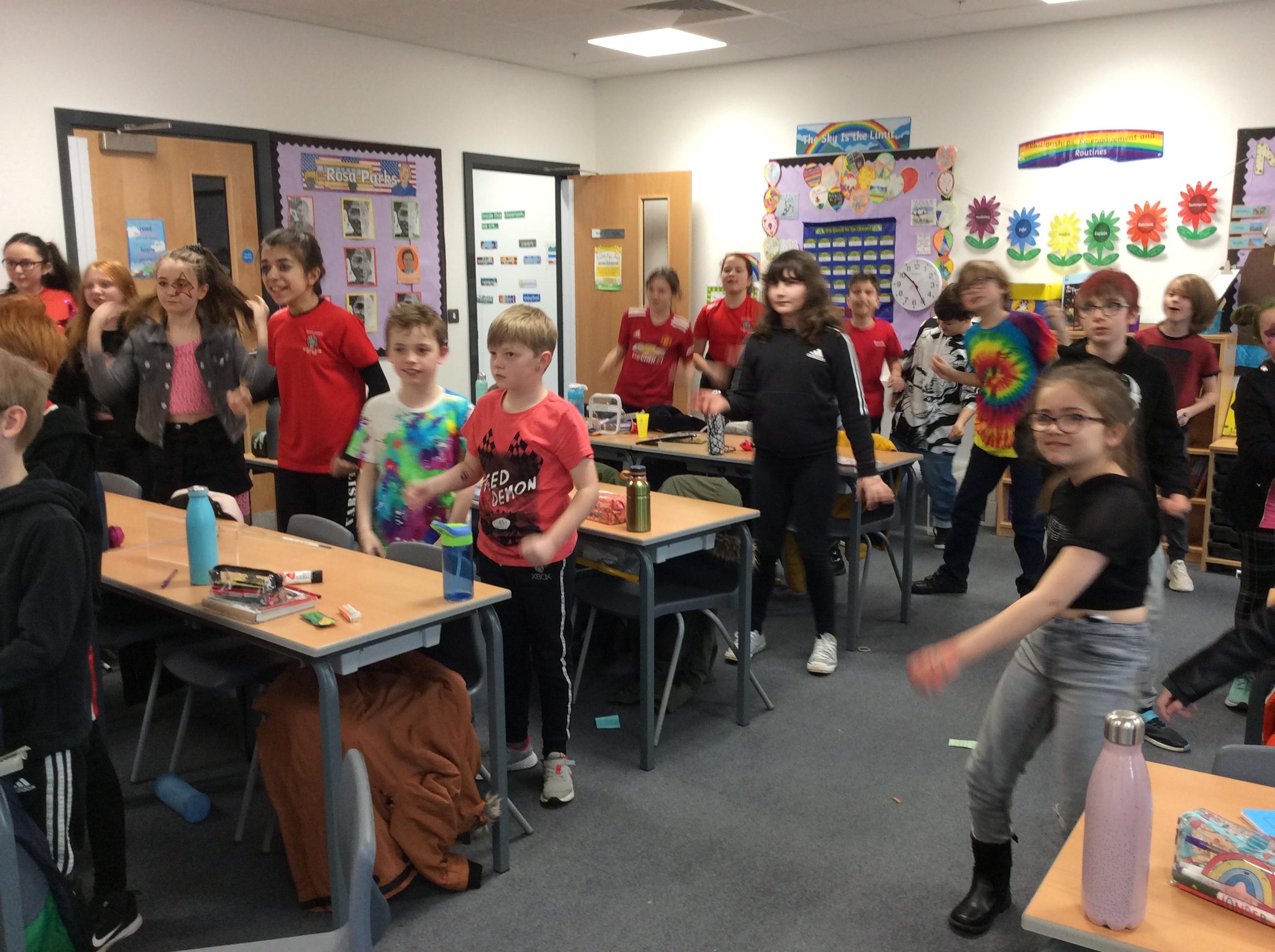 Year 5 got into character with some dancing to rock music!